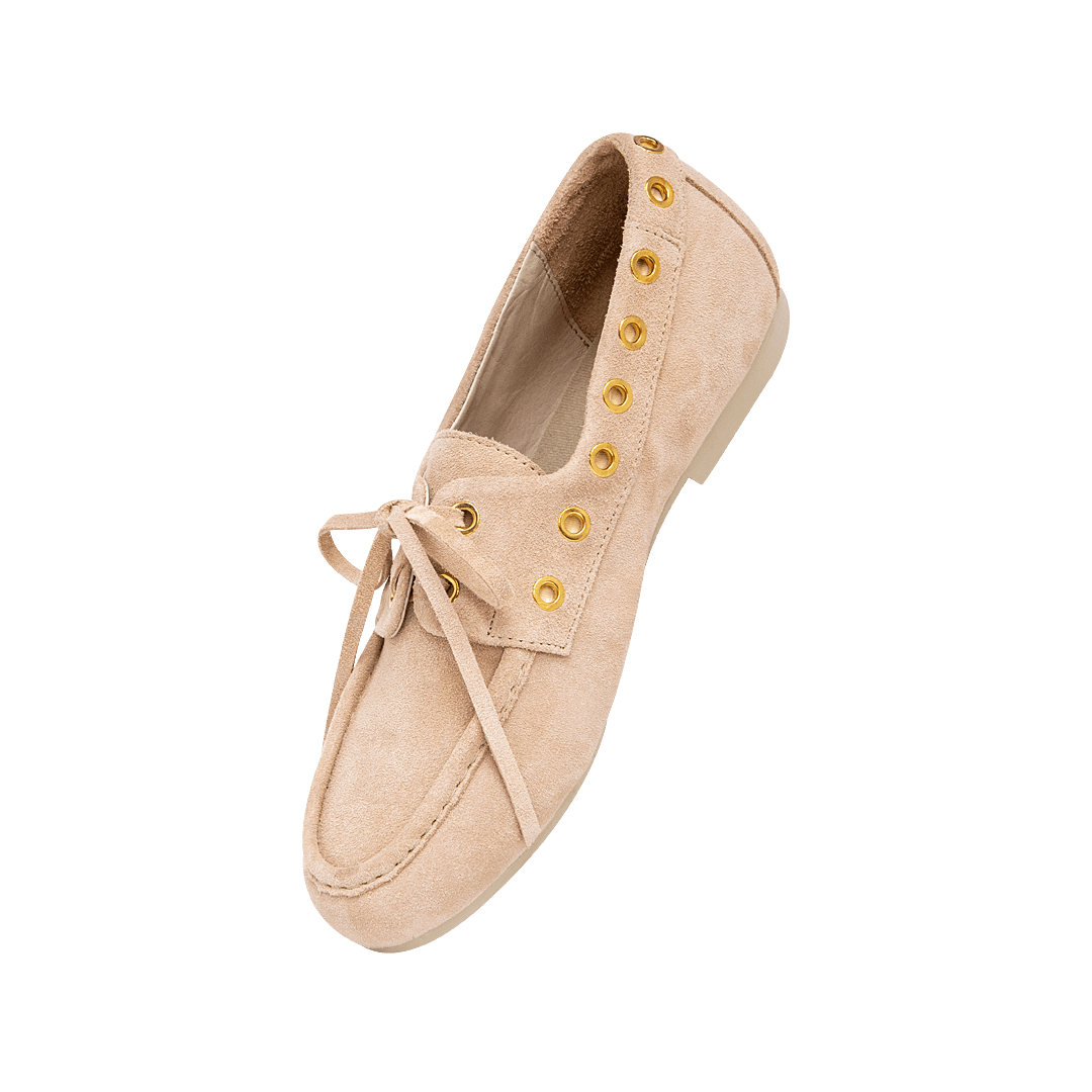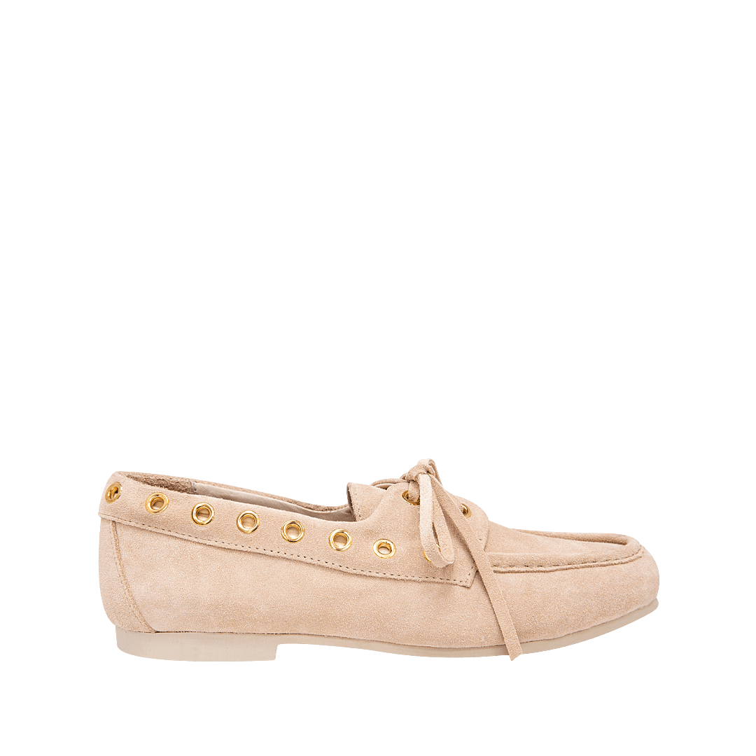 Mocasín con ojaletes en cuero nuage