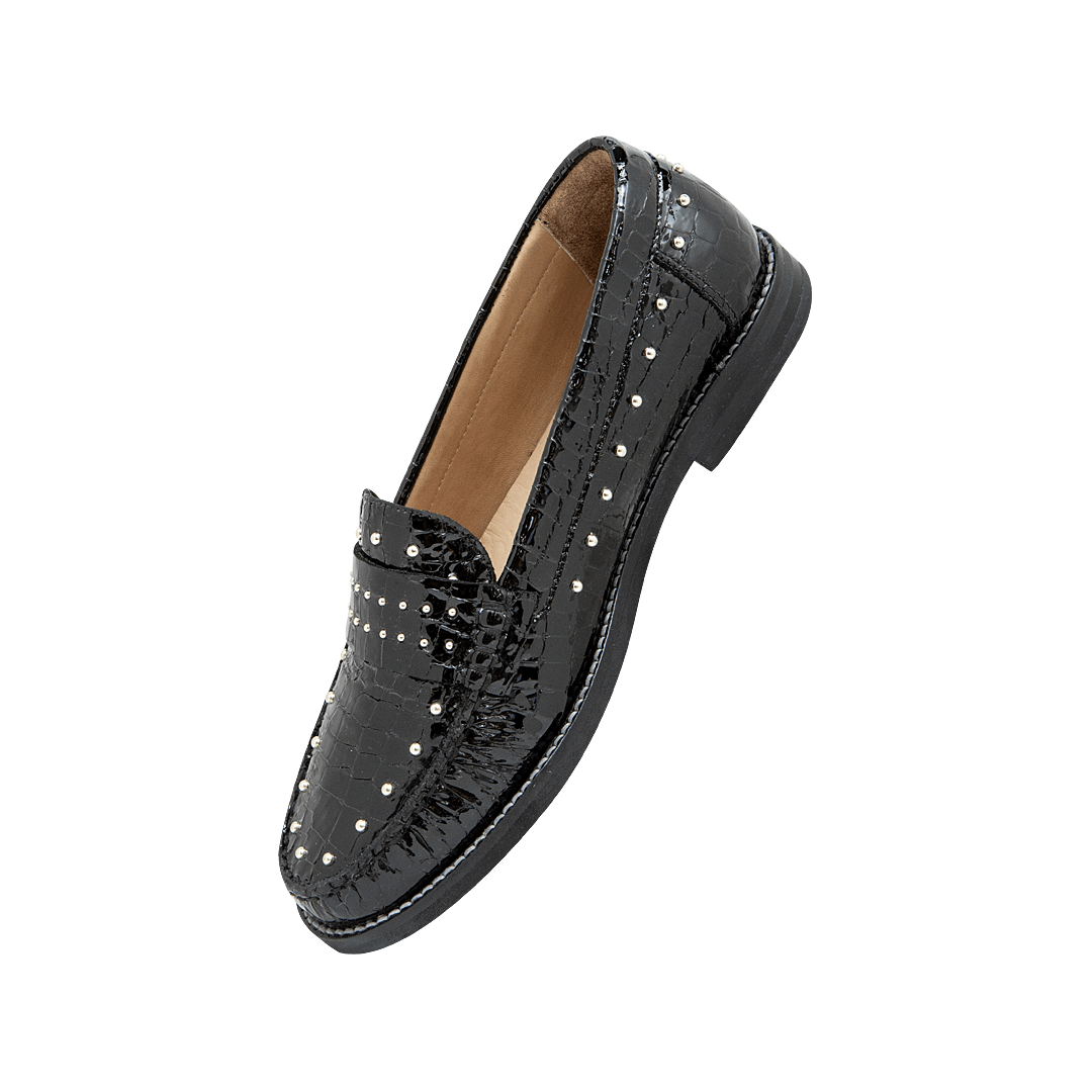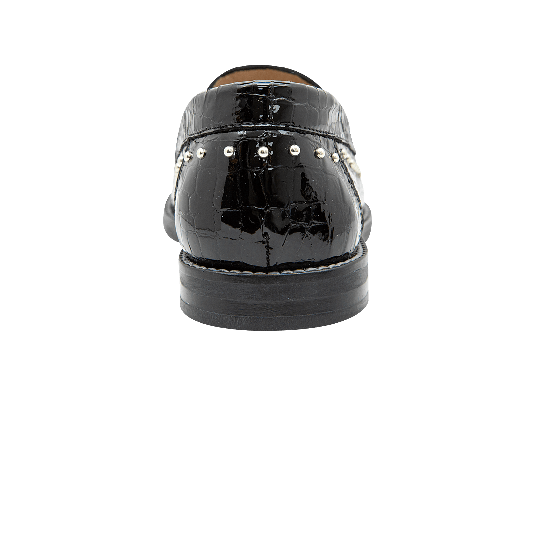 Mocasín con taches en cuero charol negro ónix