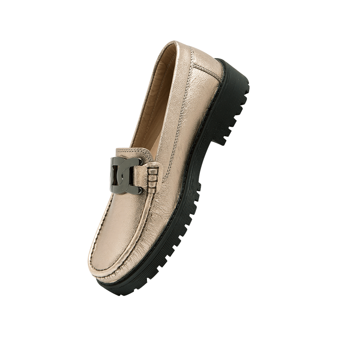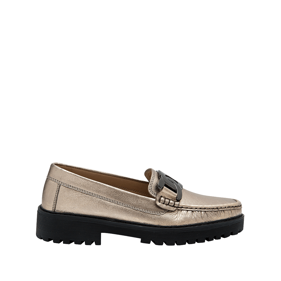 Mocasín en cuero metal arena