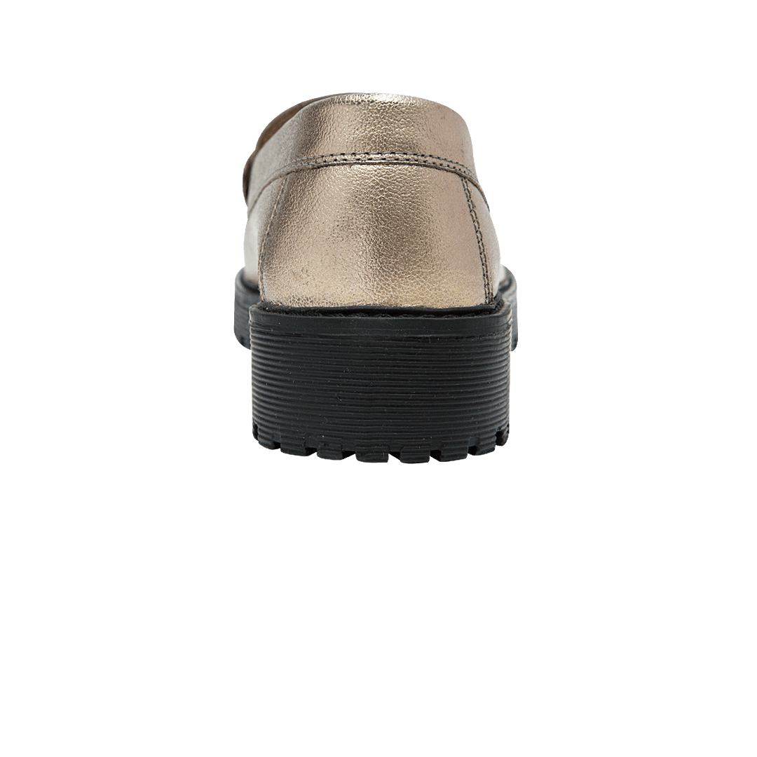 Mocasín de plataforma en cuero metalizado color luna