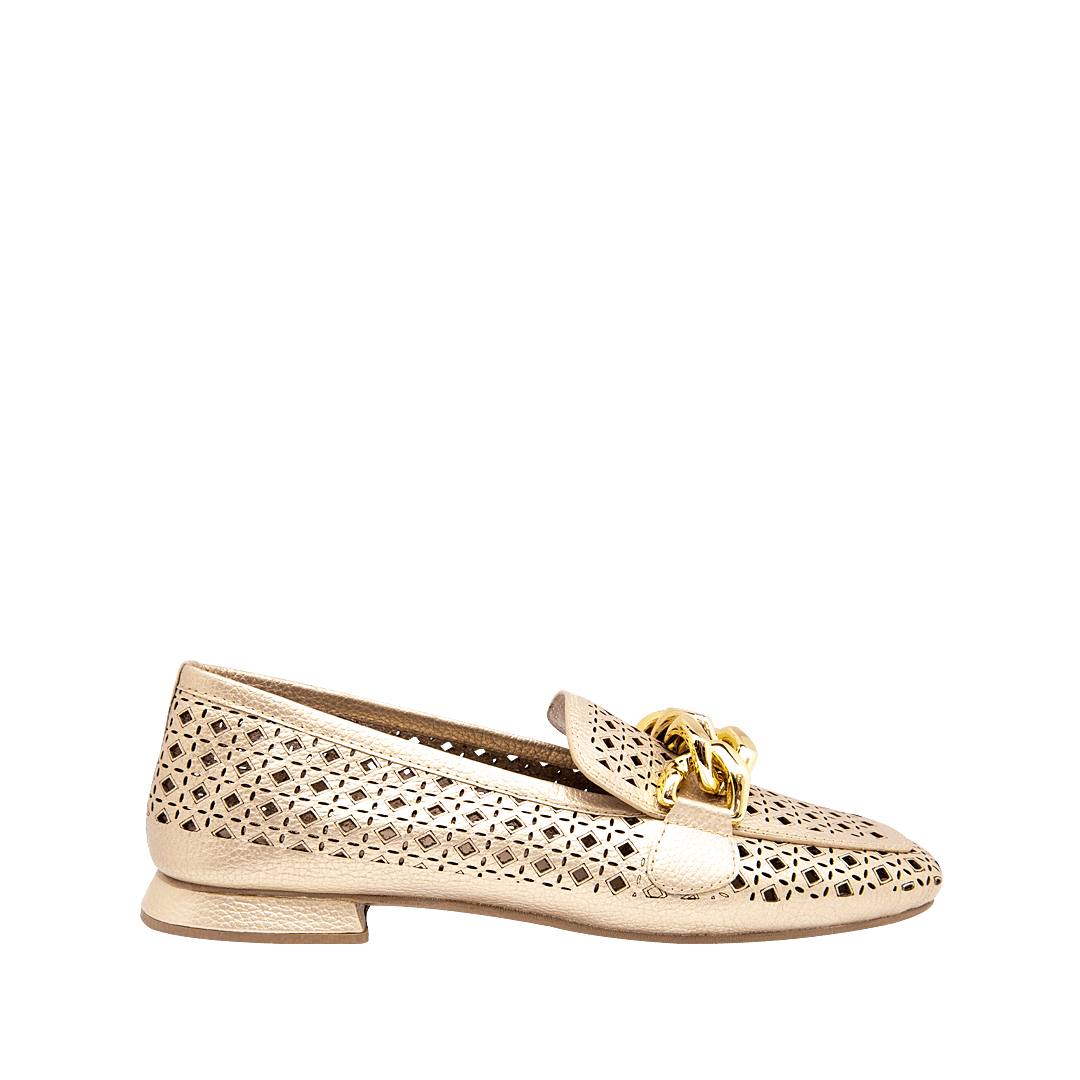 Sandalia color oro en cuero folia