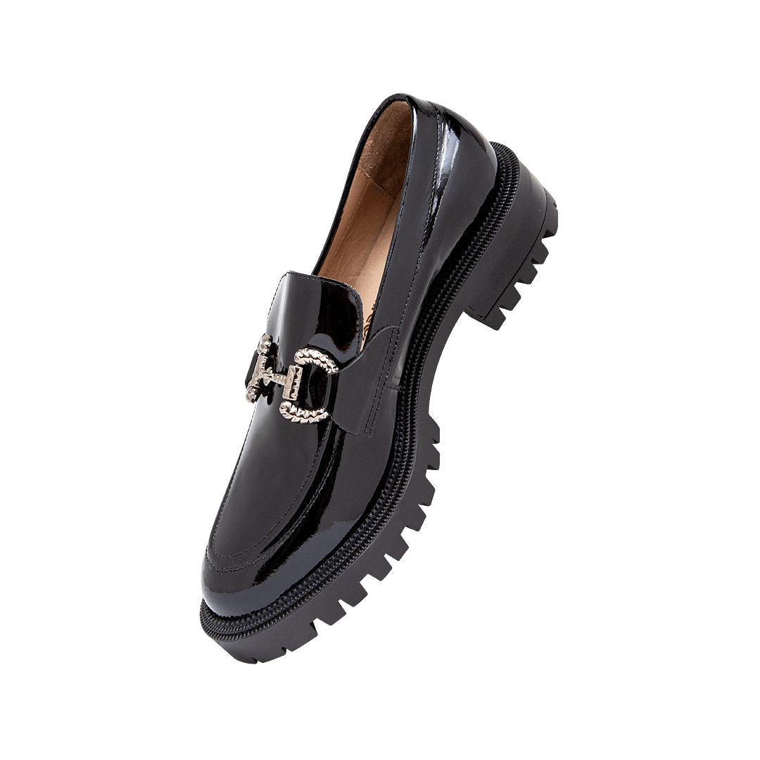 Mocasín en charol negro ónix