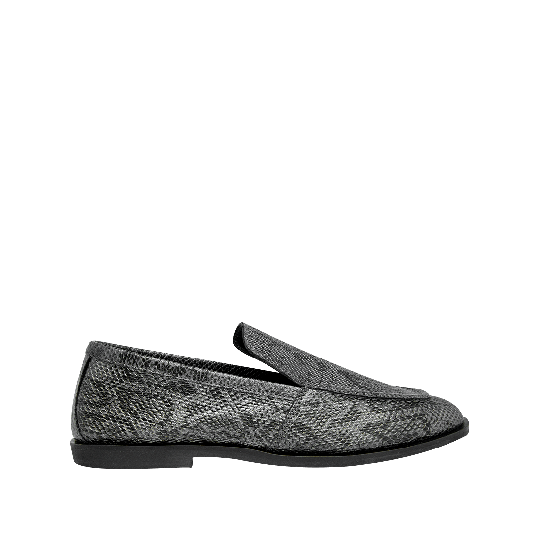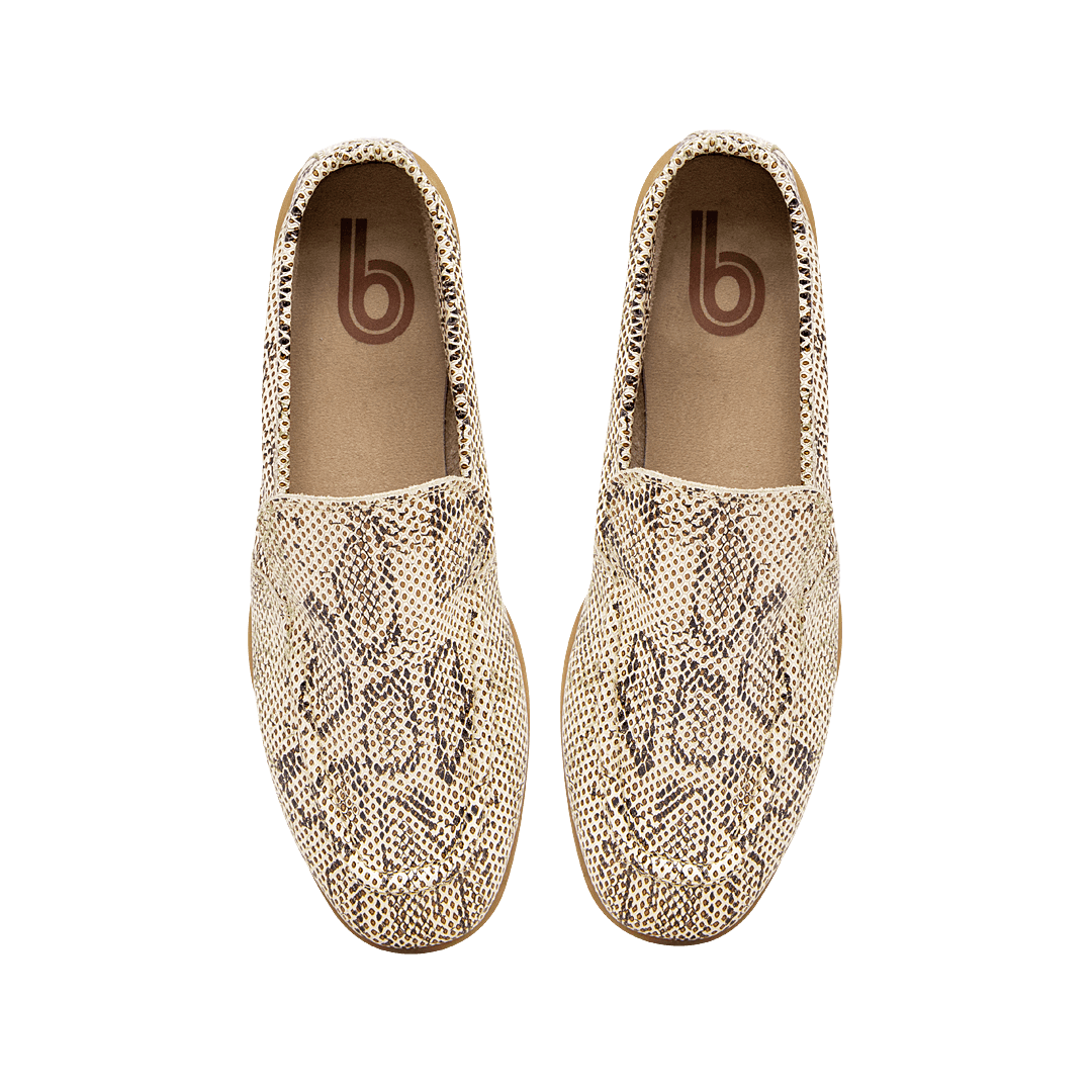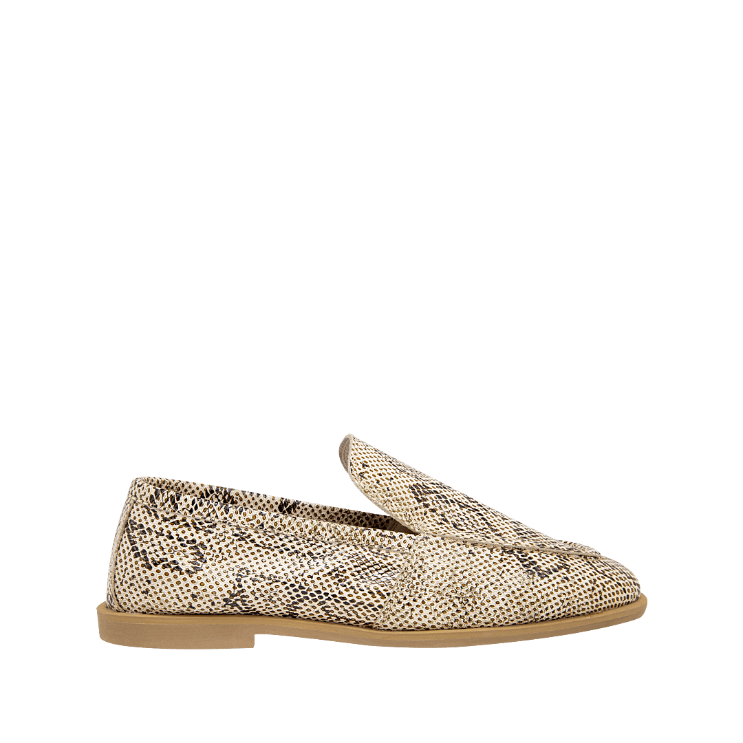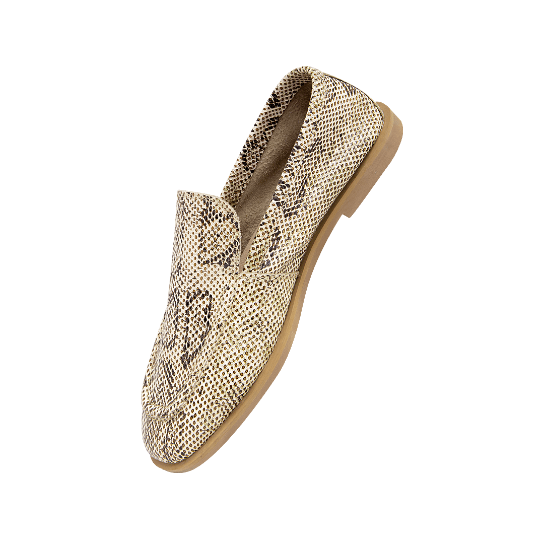 Mocasín en cuero estampado imitación pitón hoja seca