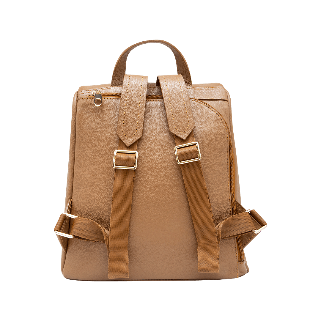 ¡No es elegir mucho, es elegir bien! • Morral para mujer en cuero granito y grabado color miel caña • Compartimiento principal trasero con cierre mediante cremallera • Dos compartimientos frontales y uno interno con cremallera • Dos bolsillos internos auxiliares • Cargadera en cuero y textil de 67 cm • Hecho a mano en Colombia.