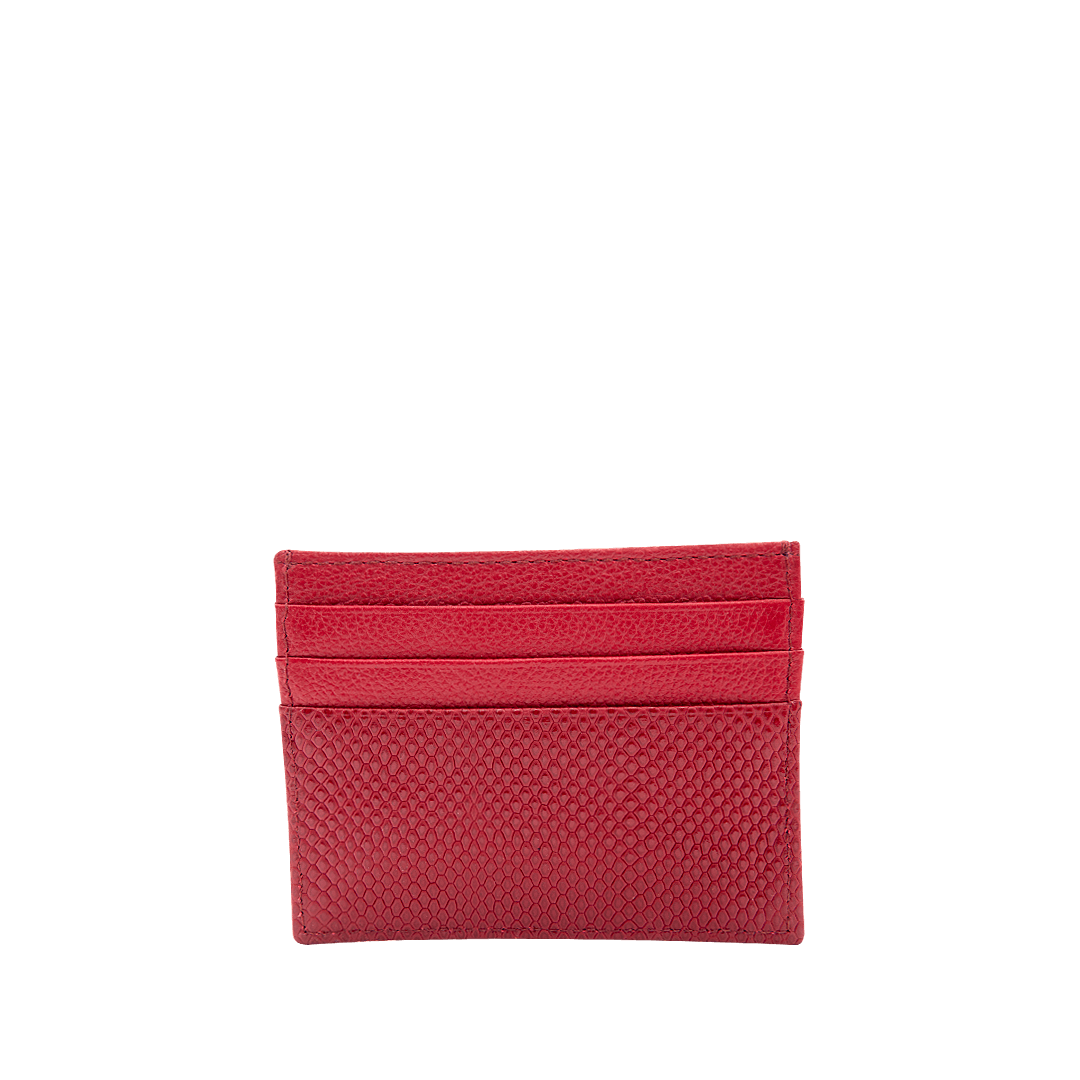 ¡Un accesorio que no necesita mucho para destacar! • Portadocumentos para mujer en cuero granito color rojo escarlata • Siete compartimientos para tarjetas • Hecho a mano en Colombia.