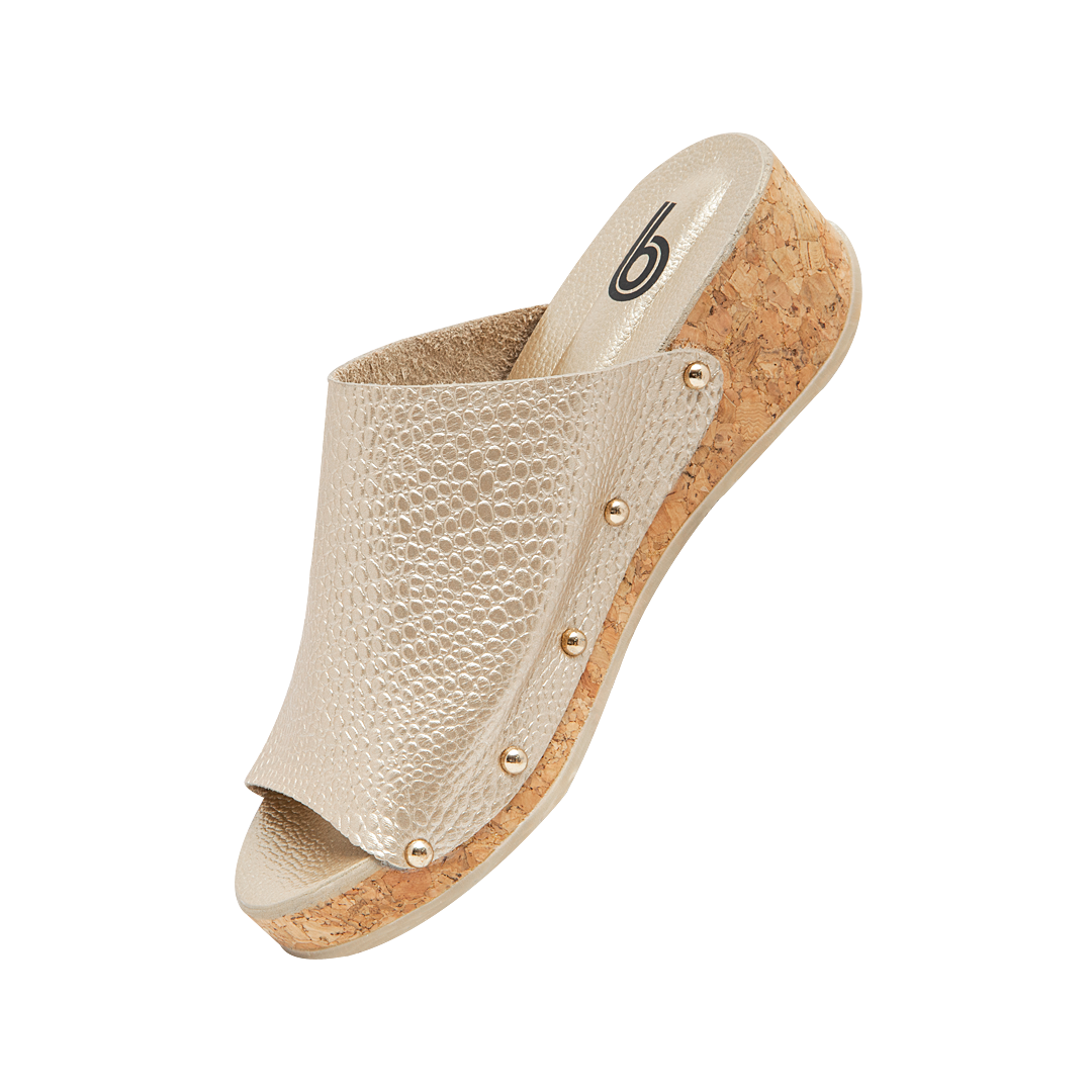 Sandalia de plataforma color oro nuevo en cuero grabado
