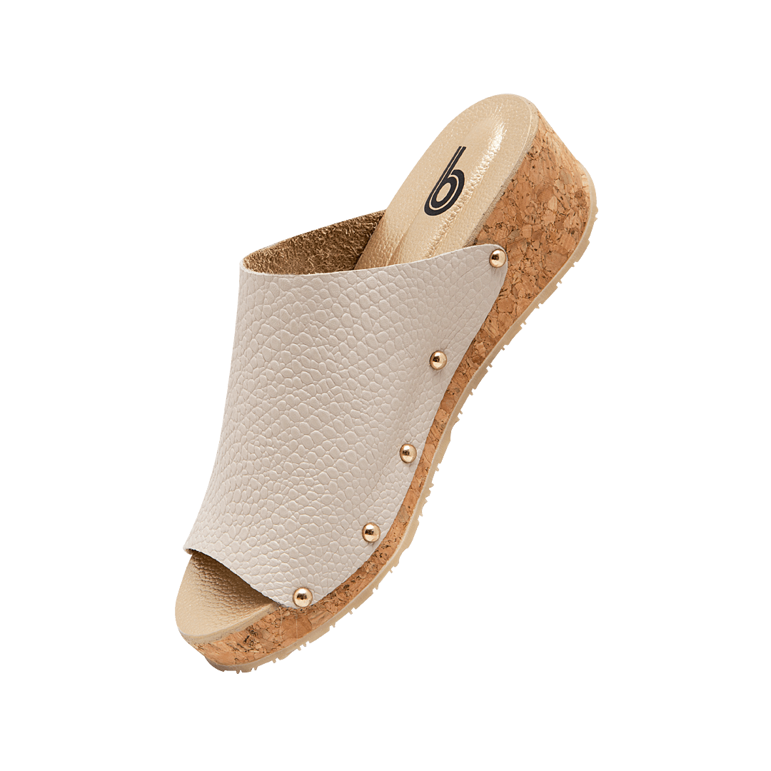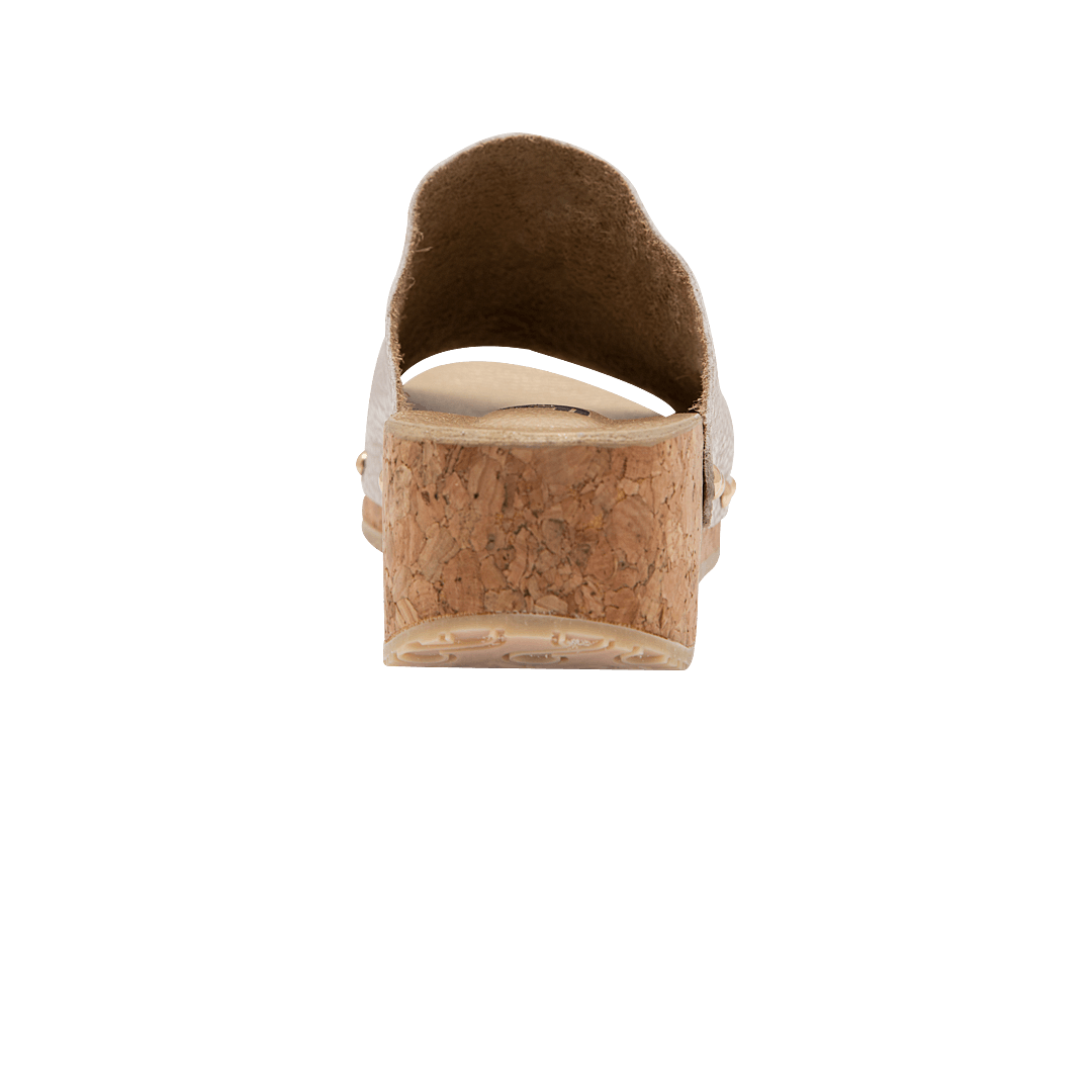 Sandalia de plataforma color oro nuevo en cuero grabado