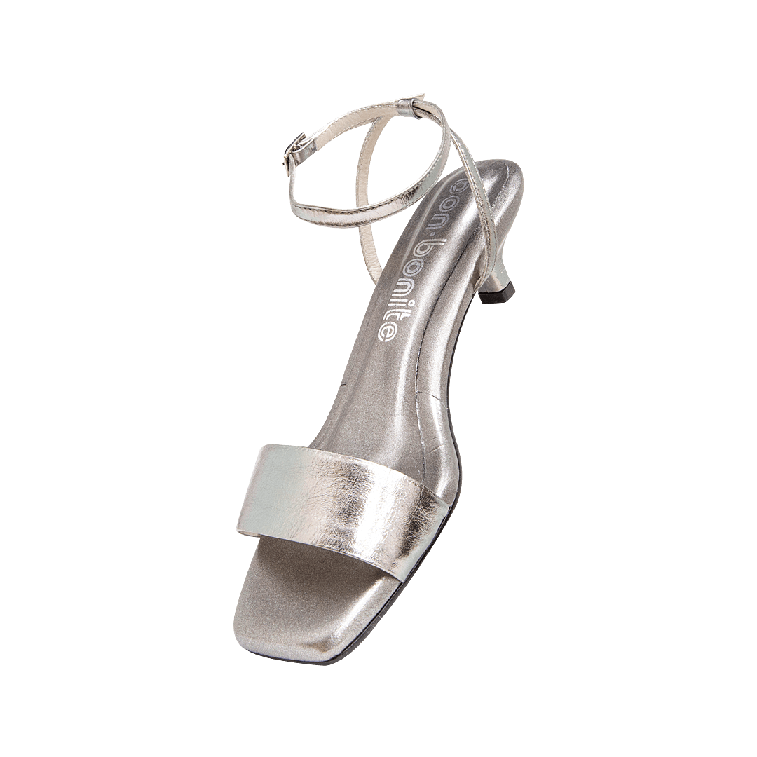 ¡Esta sandalia fue hecha para acompañarte en cualquier ocasión! • Sandalia de tacón para mujer en cuero color fusil • Acabado en punta cuadrada • Amarre al tobillo tipo pulsera • Hebilla lateral para mejor ajuste • Tacón kitten forrado en cuero • Hecho a mano en Colombia.