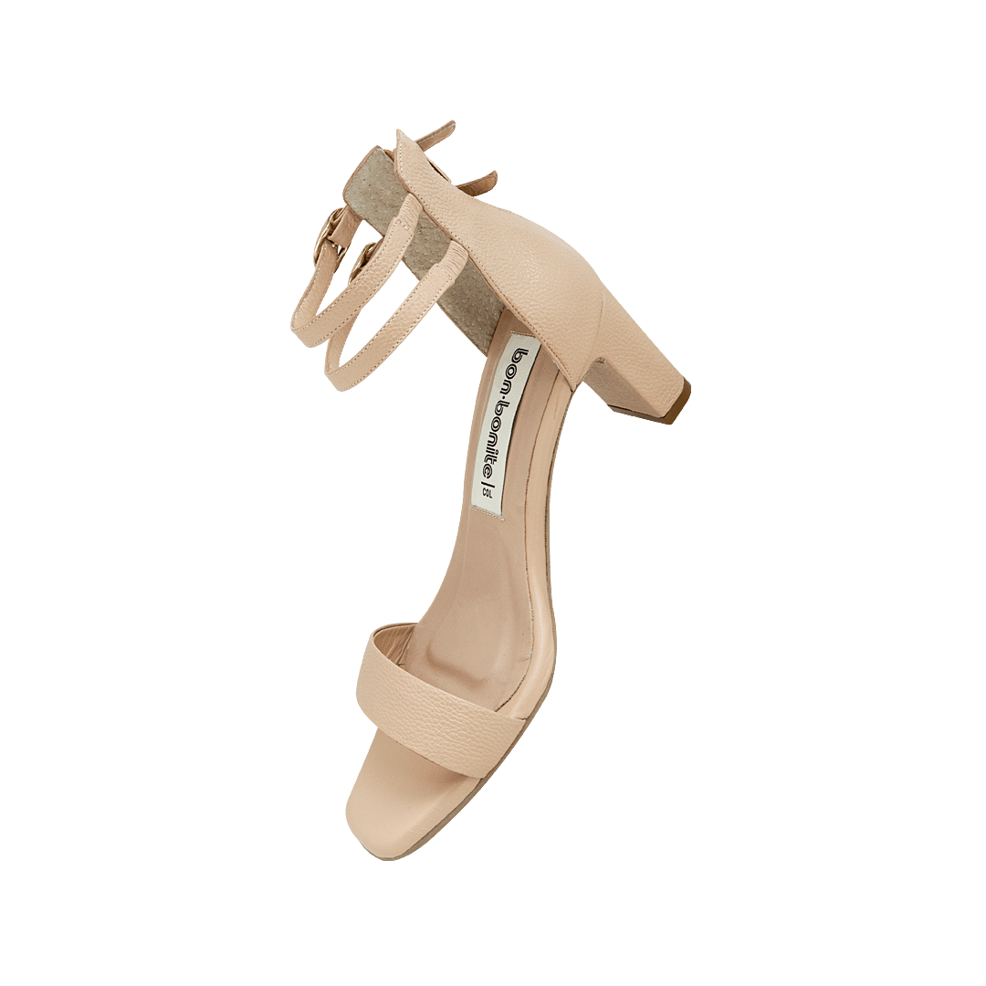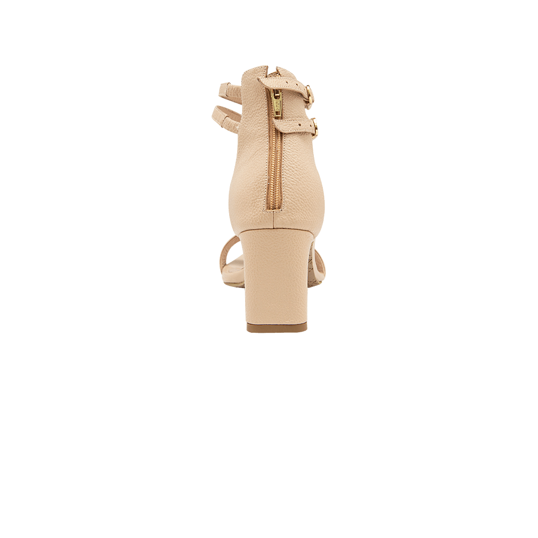 ¡Cómodas, sexys y elegantes! • Sandalia de tacón para mujer en cuero granito color nude • Acabado en punta cuadrada • Doble hebilla lateral para un mejor ajuste • Cierre trasero mediante cremallera • Tacón forrado en cuero • Hecho a mano en Colombia.