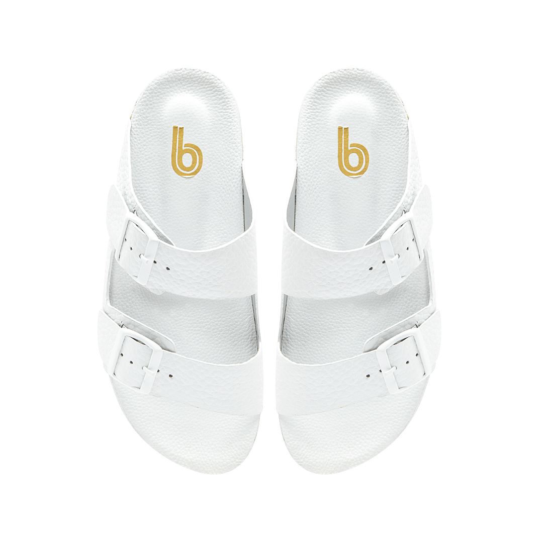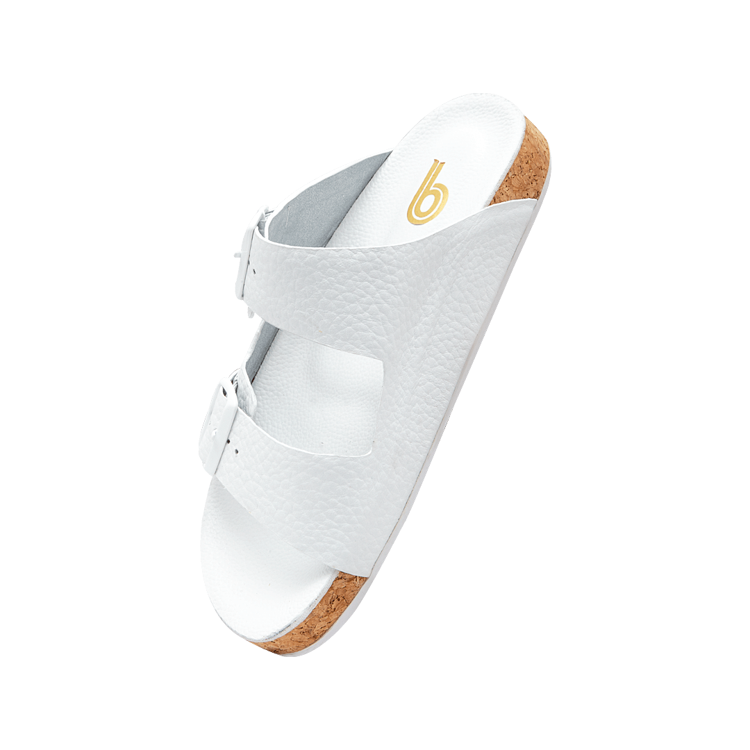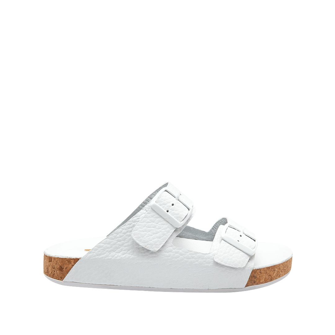 ¡La opción perfecta para un look casual! • Sandalia plana con hebillas en cuero granito color blanco puro • Acabado en punta semi redonda • Plataforma forrada en yute natural • Hecho a mano en Colombia.