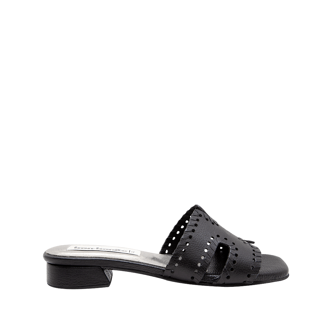 ¡Fresca y relajada! • Sandalia plana para mujer en cuero granito color duna con pespunte • Acabado en punta ovalada • Mini tacón forrado en cuero • Hecho a mano en Colombia.