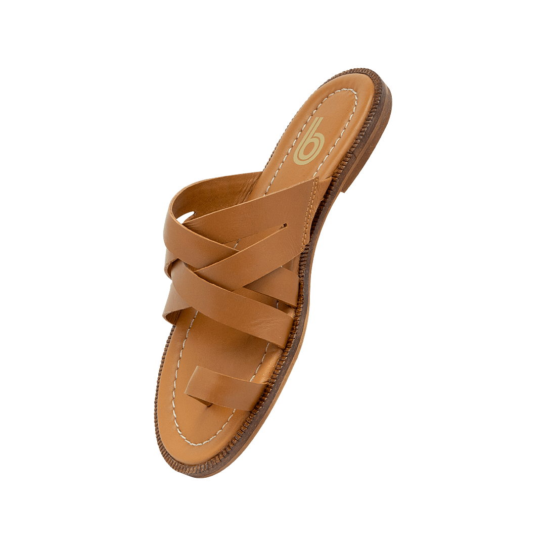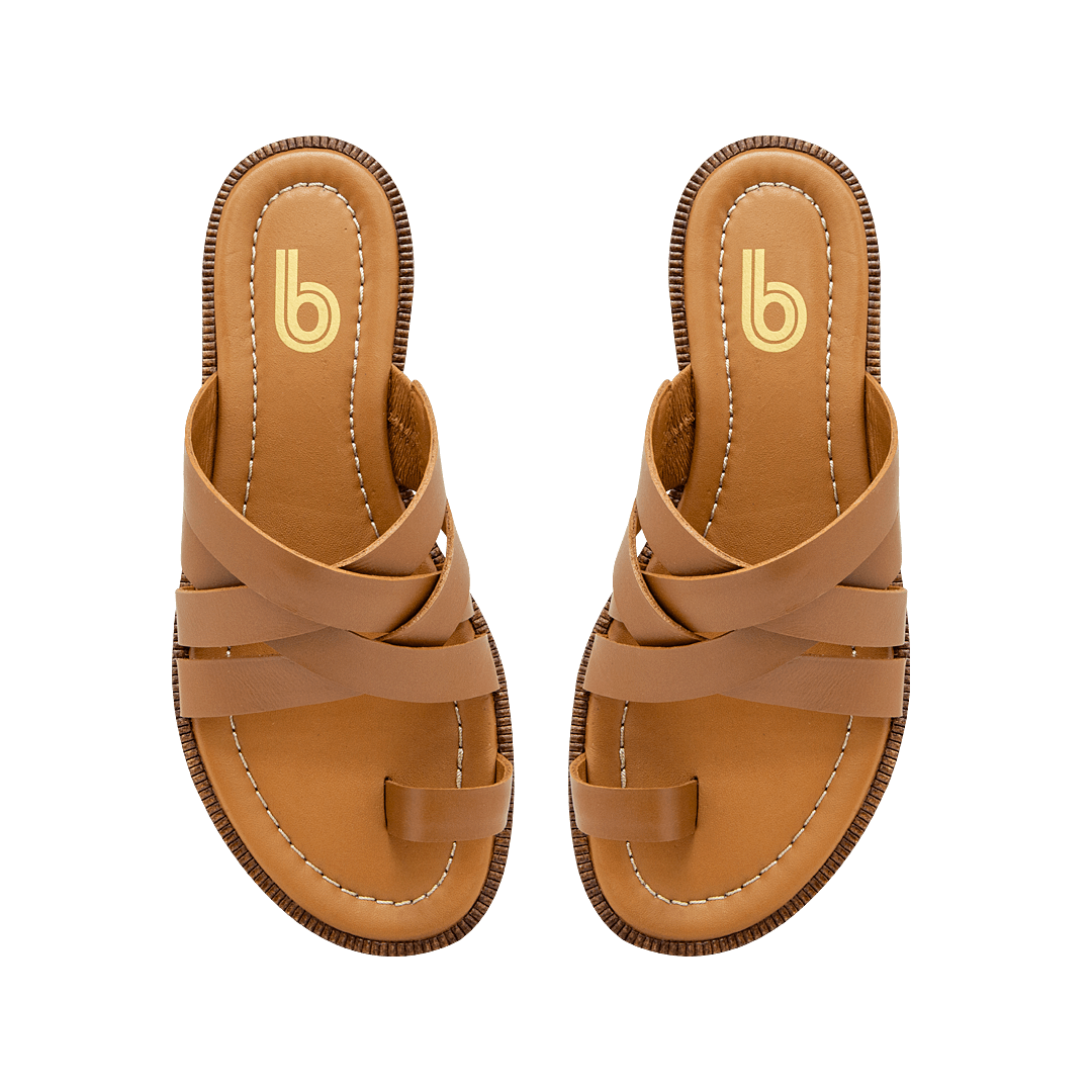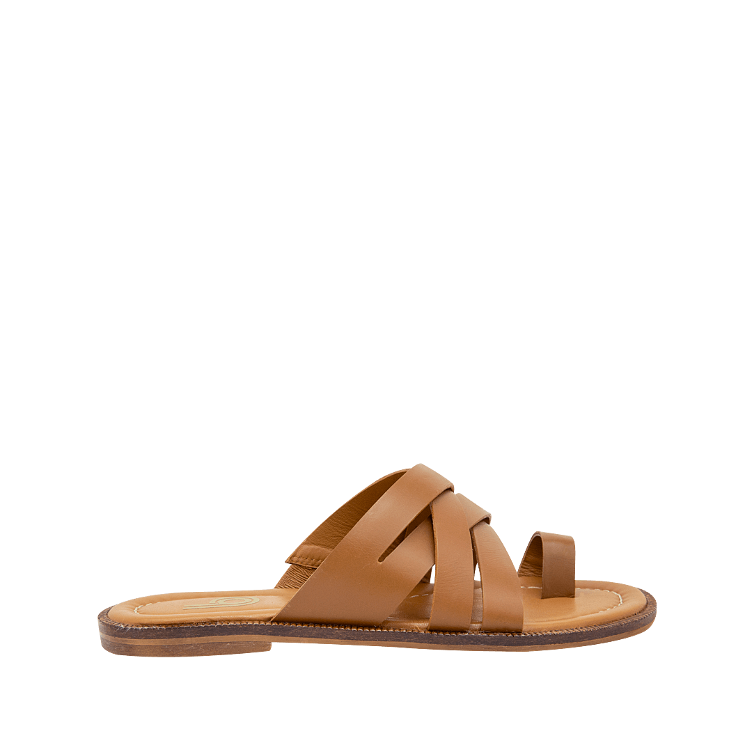 Sandalia plana en cuero miel