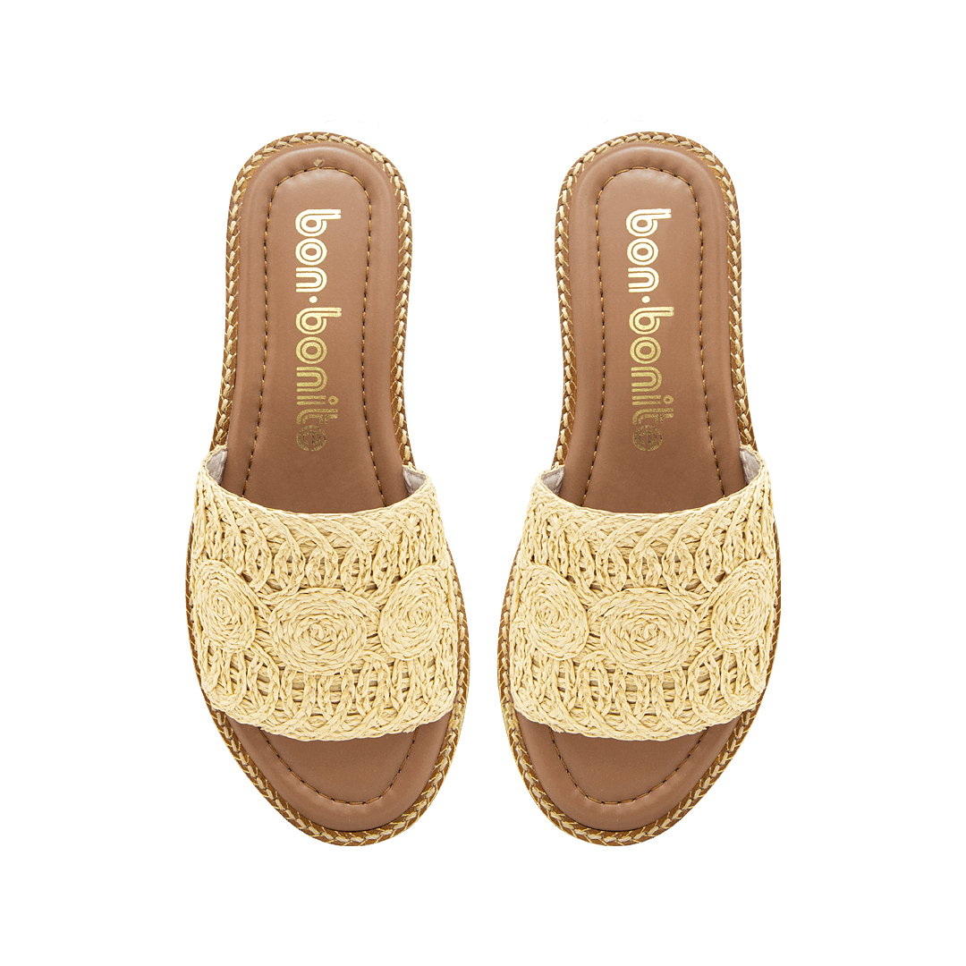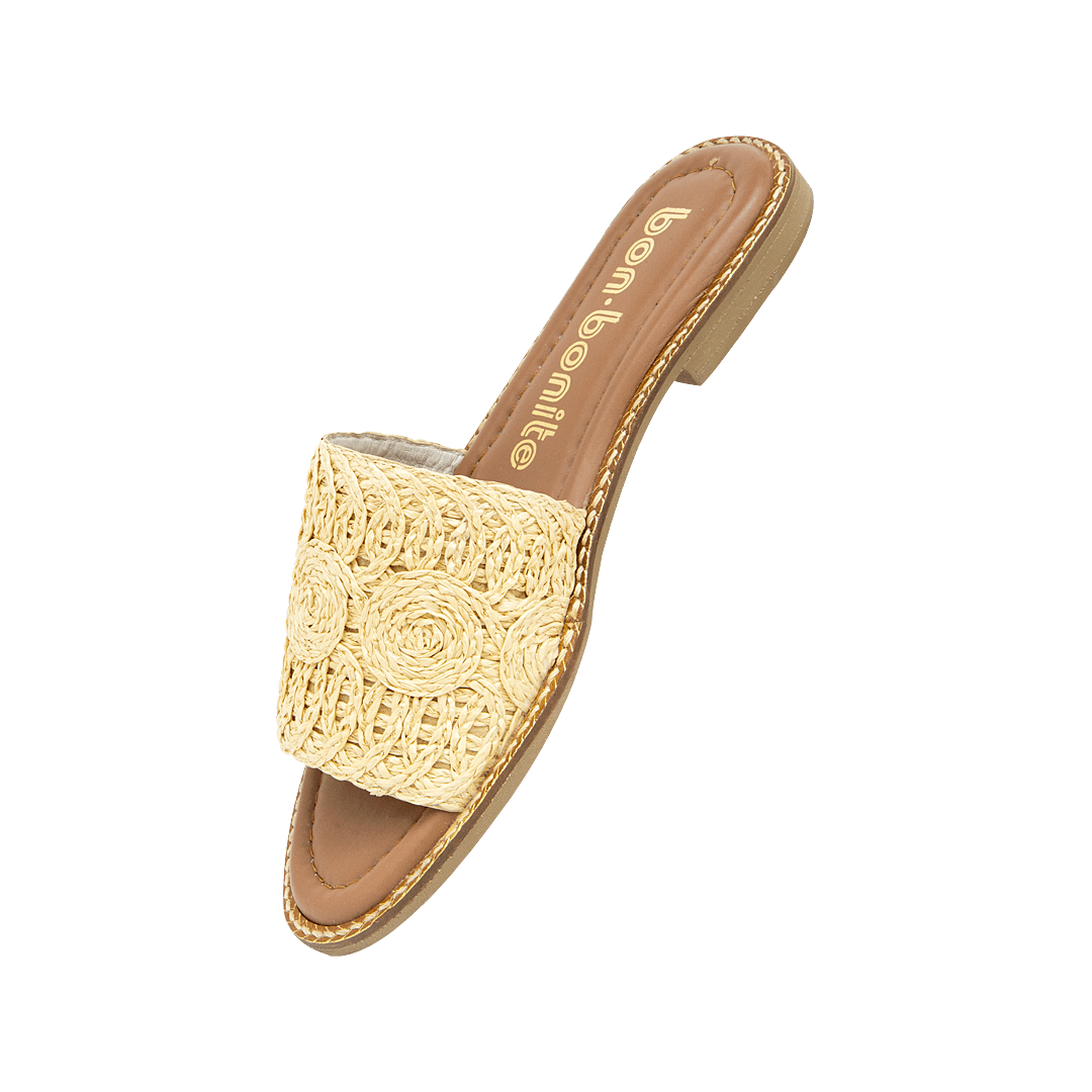 ¡Estilo natural y comodidad absoluta! • Sandalia plana tipo mule para mujer en rafia natural • Acabado en punta ovalada • Talón descubierto • Hecho a mano en Colombia.