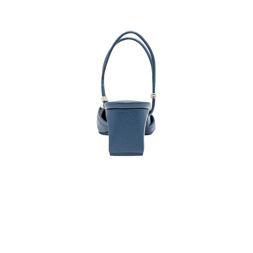 Tacón en cuero azul náutico