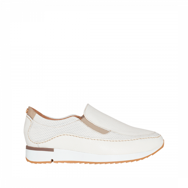 Tenis con elásticos color blanco puro en cuero grabado