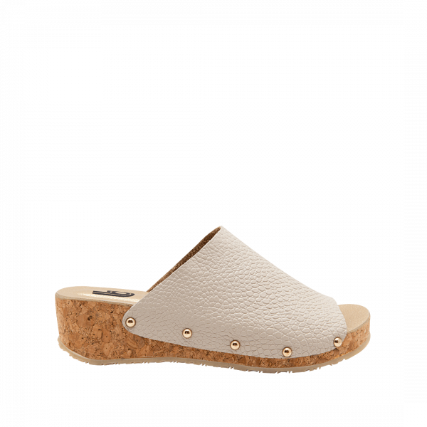 Sandalia de plataforma en cuero blanco arena