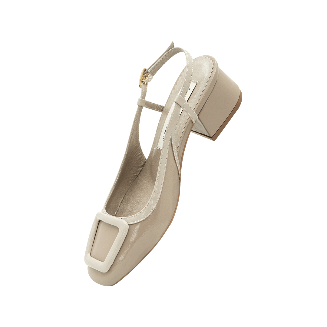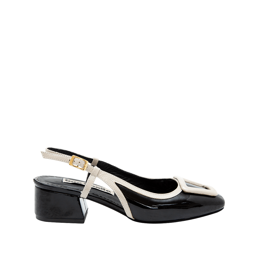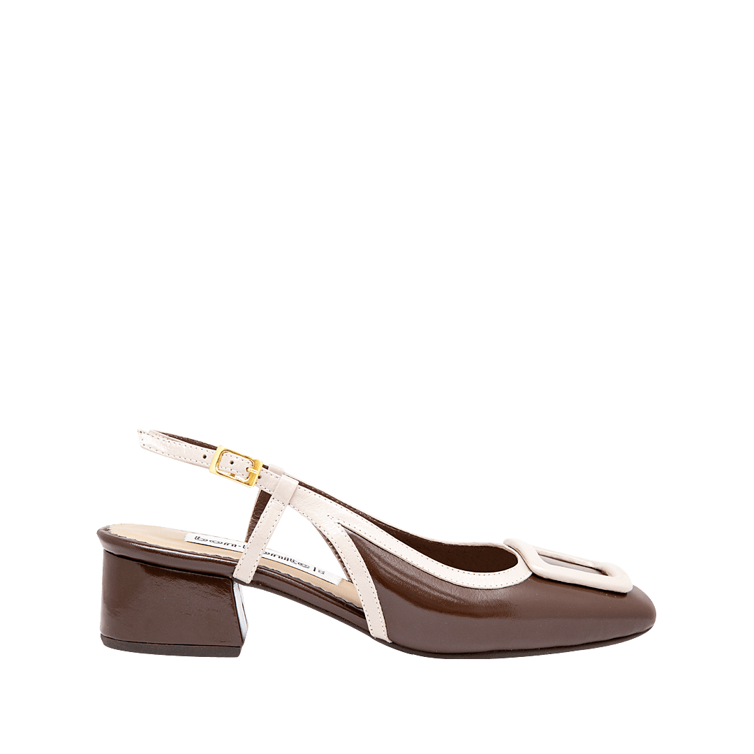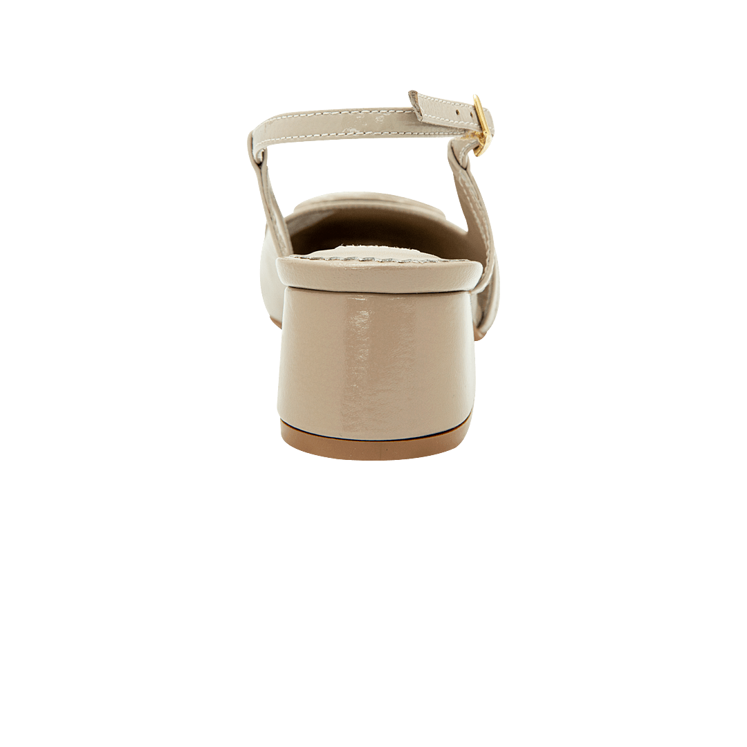 ¡Un clásico infaltable! • Tacón en cuero charol color moca • Acabado en punta ovalada • Hebilla lateral • Talón descubierto • Tacón forrado en cuero charol • Hecho a mano en Colombia.