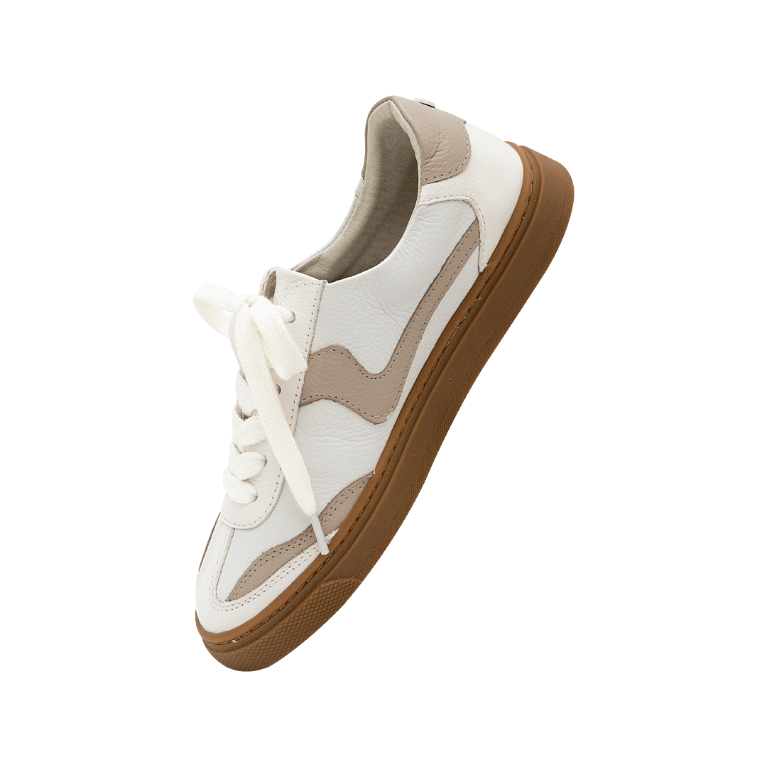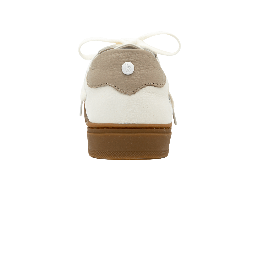 Tenis en cuero color blanco crema y pluma