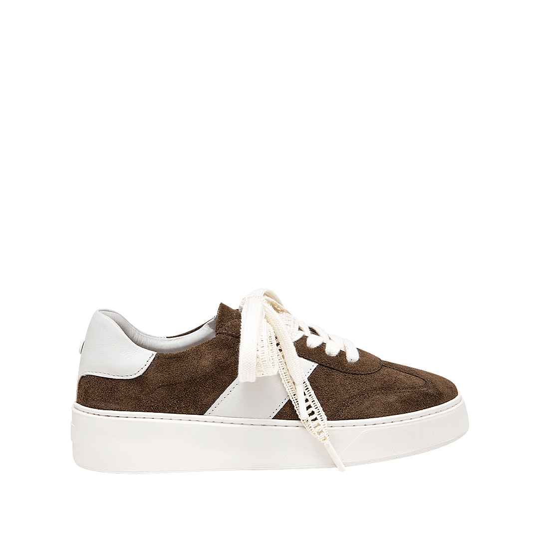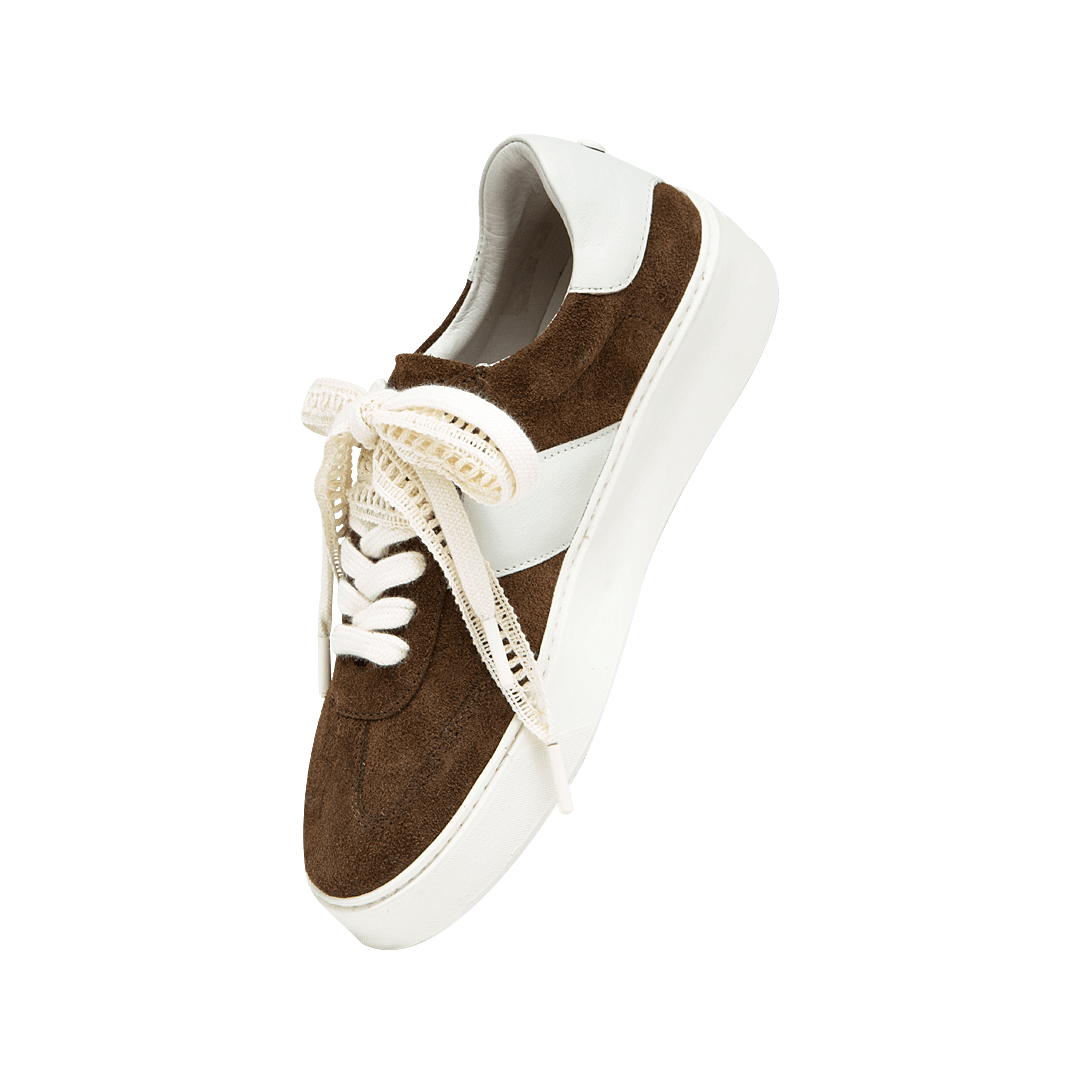 ¡Tu favorito desde el primer uso! • Tenis para mujer en cuero carnaza y liso color chocolate por duna • Acabado en punta ovalada • Doble cordón en algodón y encaje para más opciones • Hecho a mano en Colombia.