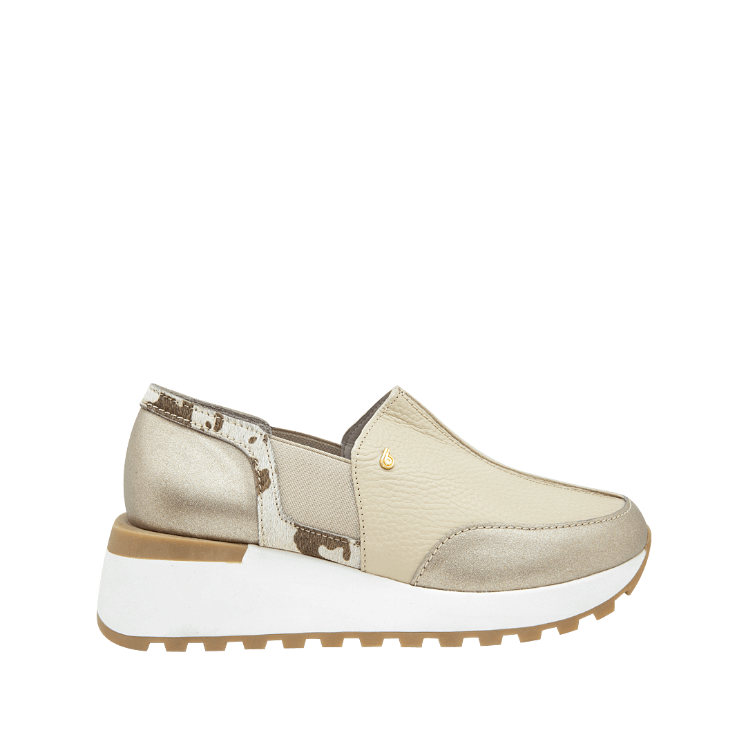Tenis sin cordón en cuero caqui