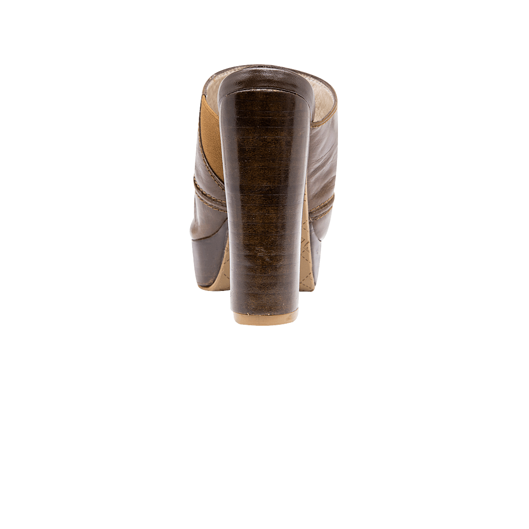 Zueco de tacón en cuero marrón
